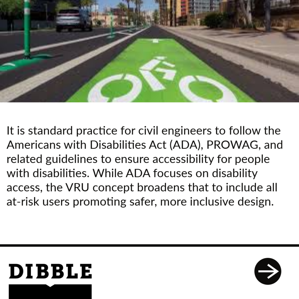 At Dibble, we have remained committed to staying at the forefront of multimodal transportation, active transportation, and VRU (Vulnerable Road User) safety. Throughout the month—and every month—we focused on the importance of designing infrastructure that supports safe, independent mobility for everyone, regardless of age or ability.