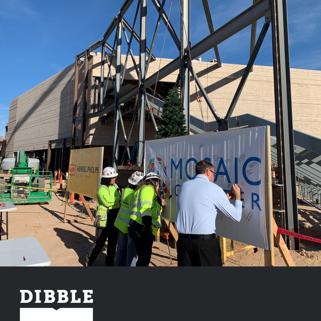 Last month, we celebrated a major milestone as the Mosaic Entertainment District in Tucson reached its topping out. Watching the final beam—adorned with the traditional evergreen—rise into place was a powerful moment. It served as a reminder of the collaboration, dedication, and shared vision that fuel projects shaping the future of our community.