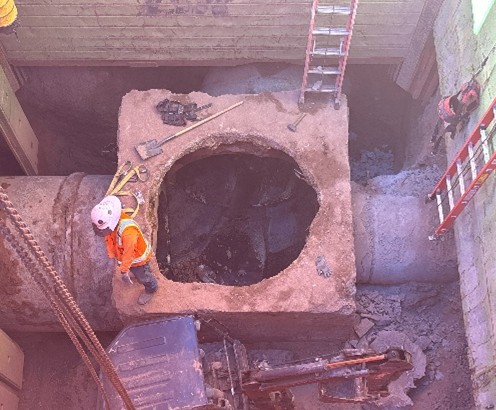 The successful rehabilitation of the city’s 66-inch sewer demonstrates how trenchless technology can efficiently extend the service life of large-diameter infrastructure. Through collaborative CMAR delivery, this project addressed multiple challenges with minimal service interruptions. Innovative design solutions, including CIPP liner, polymer concrete manholes, a custom polymer concrete junction structure, and FRP termination seals, provide lasting value with corrosion resistance. The team successfully bypassed 20 MGD of flow during construction and achieved long-term resilience. This case sets a benchmark for large-diameter sewer rehabilitation in heavily traveled, high-visibility metropolitan areas.