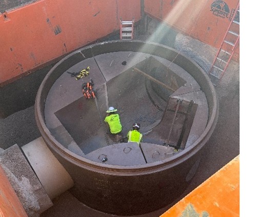 The city made a strategic decision to add 16 new polymer concrete manholes and one polymer concrete insert to the rehabilitation program. While this increased construction costs by approximately 10 million dollars and extended the schedule by about six months, this forward-looking change reduced lifecycle costs and stakeholder impacts while improving corrosion resistance and extending the service life by more than 50 years.