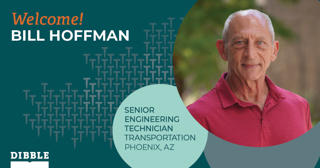 Dibble was excited to welcome Bill Hoffman to the Transportation team. He joined the Phoenix office as a Senior Engineering Technician, bringing with him 23 years of experience from Stanley Consultants, where he contributed to a variety of transportation and highway projects.